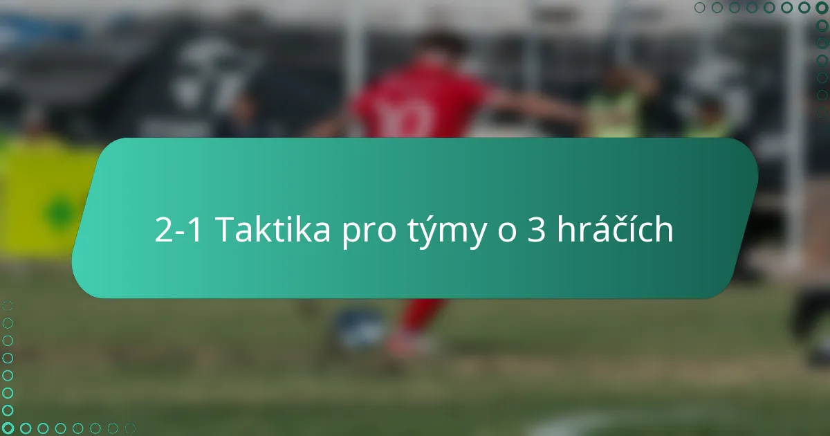 Formace 2-1 je taktická struktura běžně používaná ve fotbale 3 na 3, zahrnující dva obránce a jednoho útočníka. Toto uspořádání umožňuje týmům udržovat solidní obrannou strukturu a zároveň poskytovat příležitosti pro protiútoky.