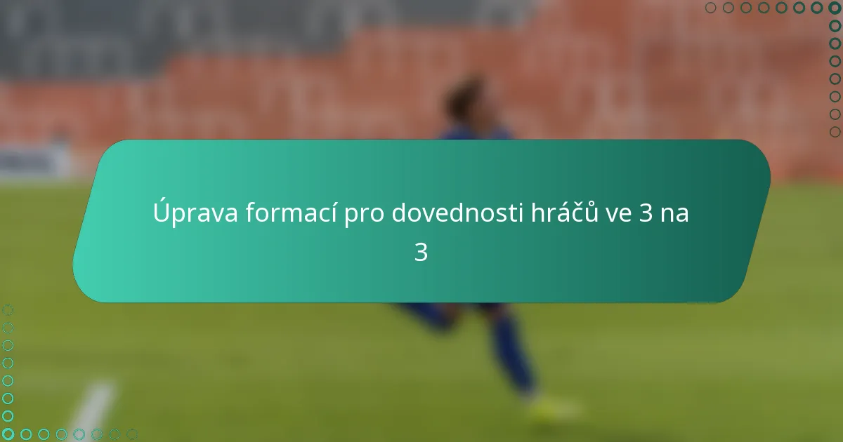 Trénink úprav formací ve hře tři na tři vyžaduje důkladné porozumění silným stránkám hráčů a schopnost dynamicky přizpůsobovat strategie. Efektivní komunikace, flexibilita pozic a neustálé hodnocení herních situací jsou zásadní pro optimalizaci výkonu týmu.