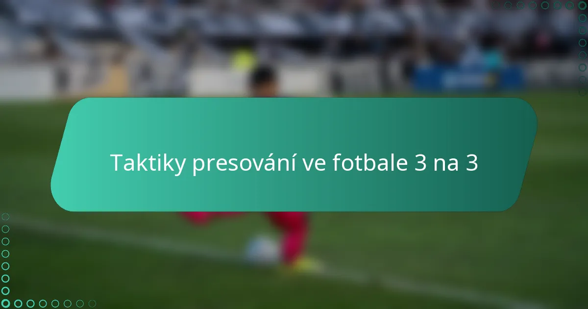 Pressing v 3-na-3 fotbale je zásadní taktický přístup, při kterém hráči vyvíjejí tlak na soupeřský tým, aby rychle získali míč zpět. Tato strategie je obzvlášť účinná v menších formátech, protože narušuje hru soupeře a otevírá příležitosti ke skórování. Použitím taktik, jako je vysoký pressing a proti-pressing, mohou týmy výrazně ovlivnit výsledek zápasu.